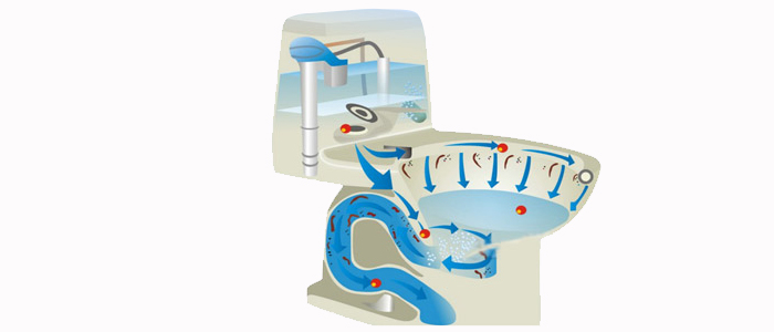 虹吸式马桶:水会形成漩涡,很容易冲掉黏附在马桶表面的脏物。